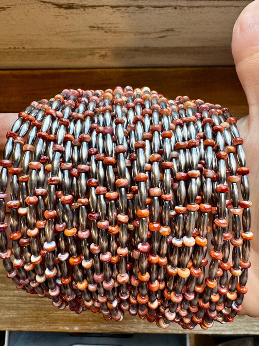 14-Inch Sterling Silver Torpedo & Spiny Oyster Heishi Choker