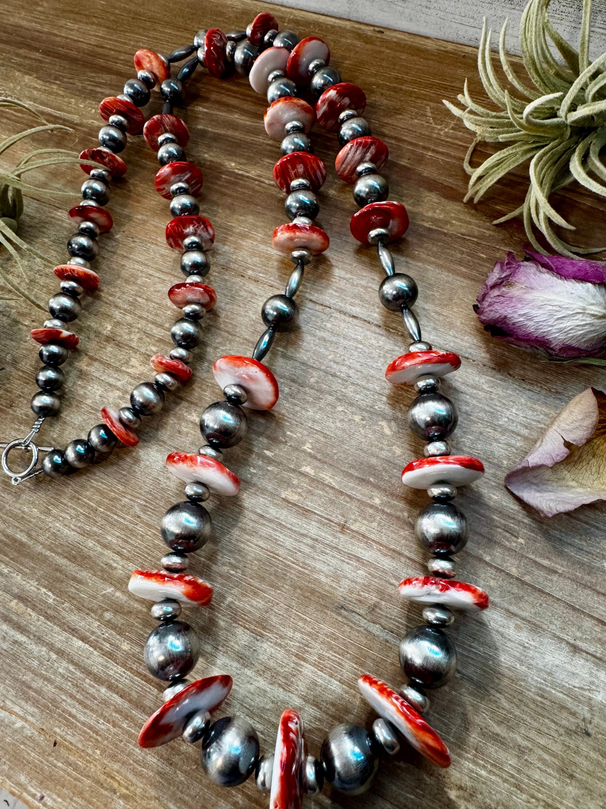 NFR Collection Necklace – Graduated Spiny Oyster & Sterling Silver Pearls 45"
