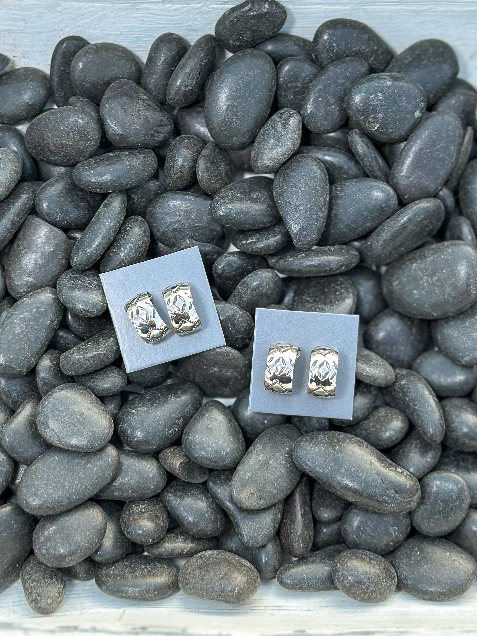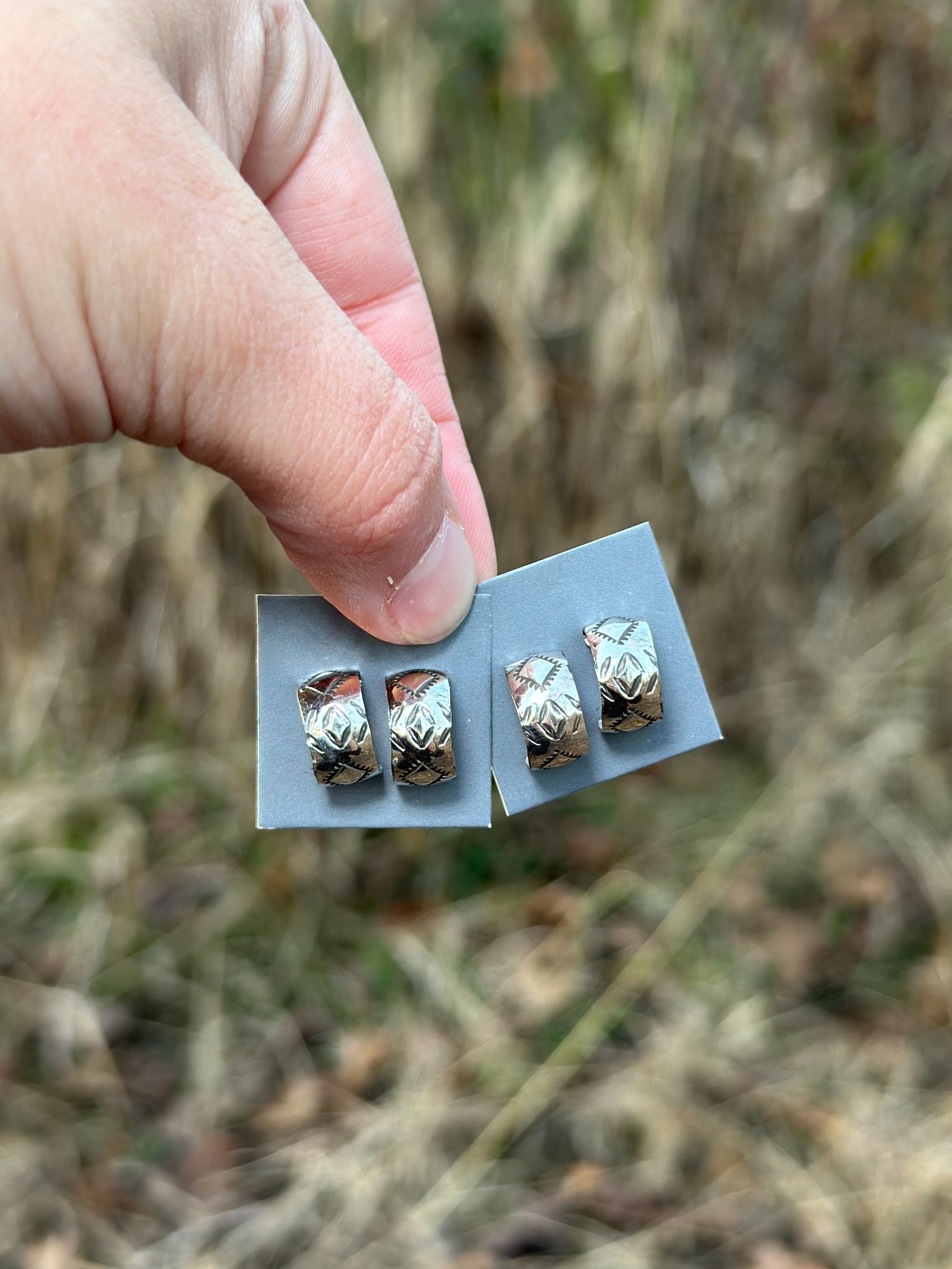 Stamped Silver Hoops